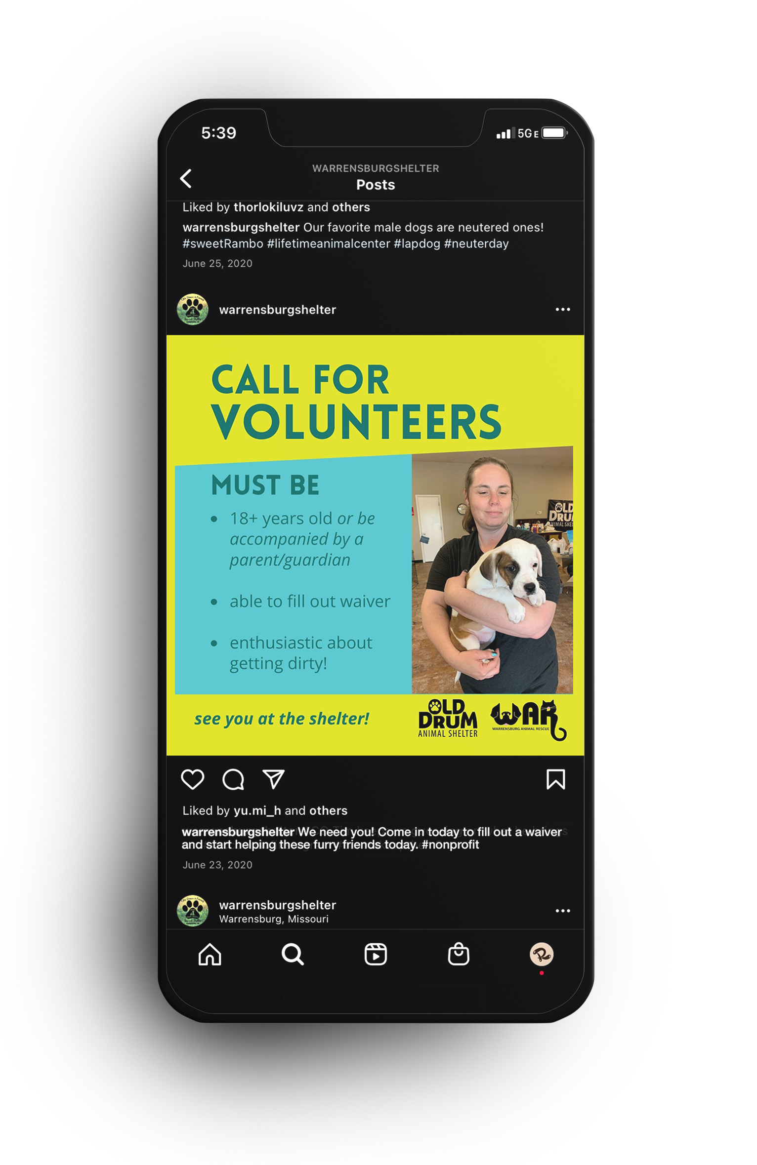 Boosted outreach by posting at events, designing signage, producing social media campaigns. Click the icons below to view the shelter's social pages.